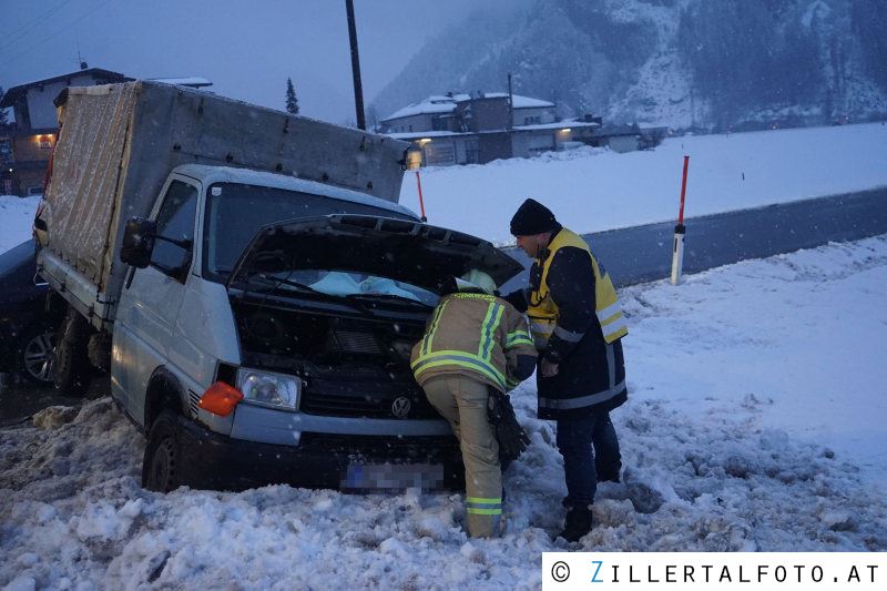 Mayrhofen – Am 11. Februar 2019 gegen 17:30 Uhr kam auf der L330 bei der sogenannten Cicero Kreuzung aus unbekannter Ursache zu einem Zusammenstoß zwischen zwei einheimischen Fahrzeugen. Dabei landete ein Pritschenwagen im angrenzenden Feld. Die Freiwillige Feuerwehr führte die Fahrzeugbergung und Aufräumarbeiten durch, verletzt wurde niemand. An beiden Unfallfahrzeugen entstand erheblicher Sachschaden und mussten abgeschleppt werden. Der Unfallbereich war für rund 30 Minuten erschwert passierbar bzw. total gesperrt.