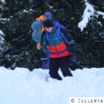 Die Basics des Freeridens konnten direkt im Gelände bei wechselhaften, tief winterlichen Bedingungen geübt werden. Geländebeurteilung, Präventionsmaßnahmen (um einen Lawinenunfall zu vermeiden) und LVS-Suche standen am Programm. Und ein „Basecamp“ gab es auch: bei der „Schihütte“ (Selbstversorgung) des Alpenvereins Zillertal mit den Stationen für die LVS-Suche, das Sondieren und last but not least zur Stärkung mit Hotdog und Kinderpunsch.